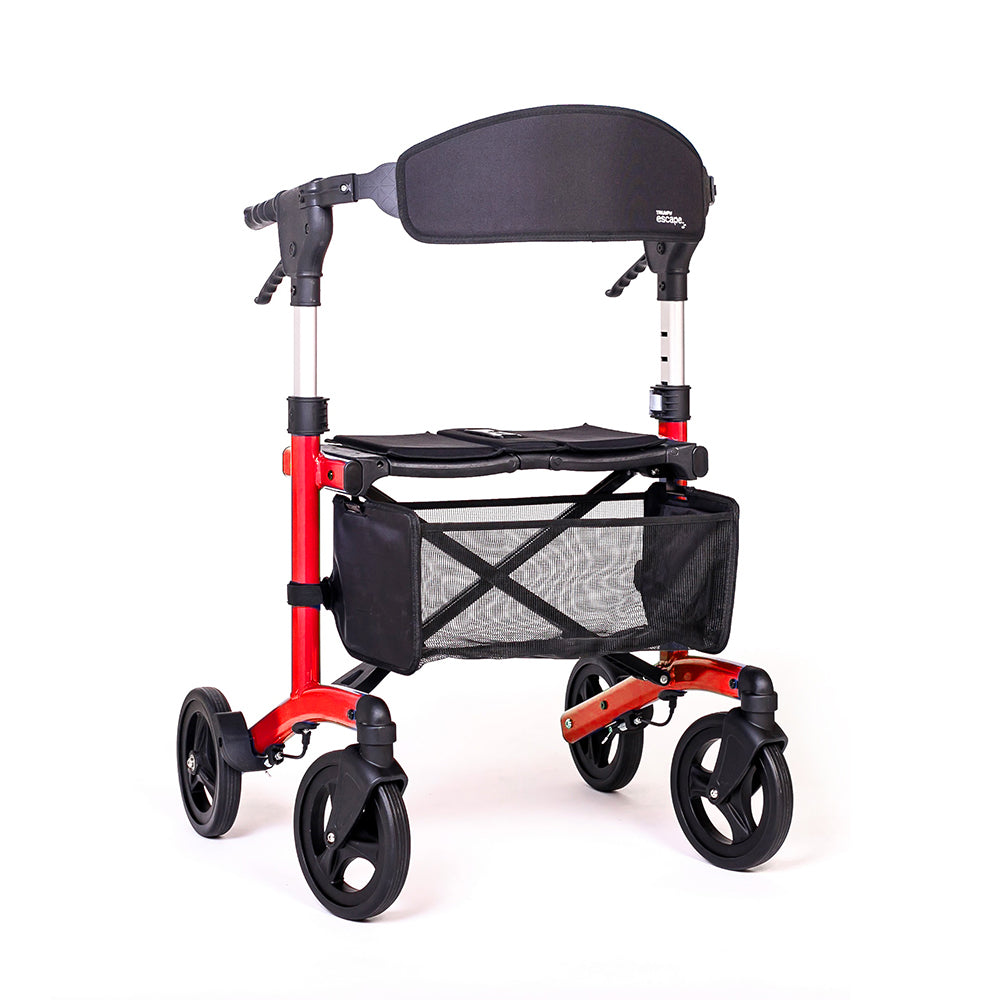 由于采用了弹簧杆,因此可以轻松调整手柄高度。减压的人体工学手柄可保持您的手部力量,制动器是所有助行器中最容易使用的手刹。这种创新的制动系统也没有电缆,不会卡在物体上或妨碍您。当需要休息时,Escape 提供可调节深度的宽大软垫靠背和宽大软垫座椅,以增加舒适度。